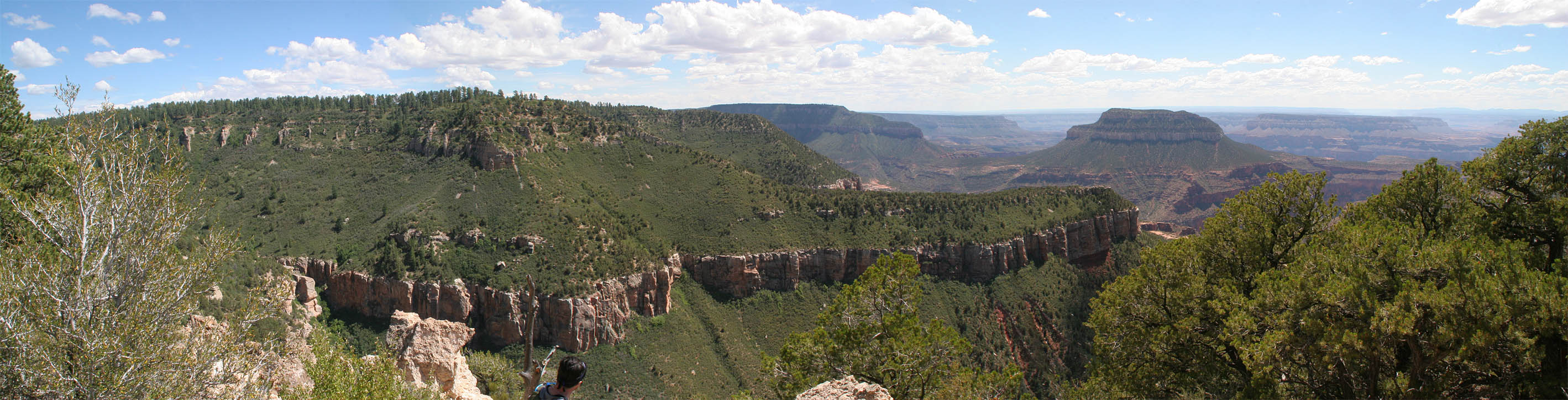 out into the Grand Canyon and then follows mild drainage contours around to the