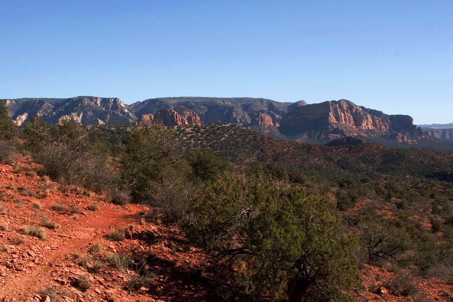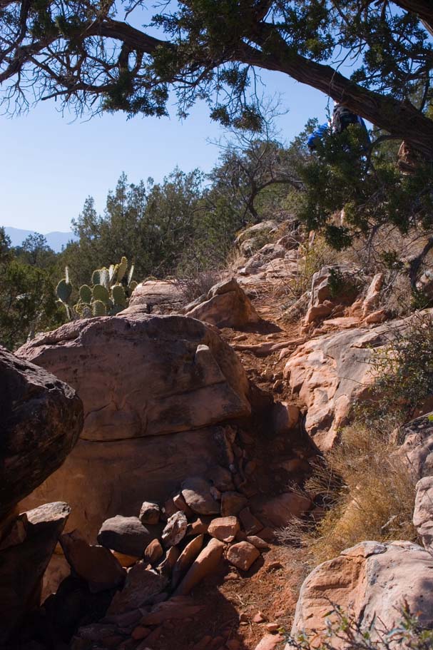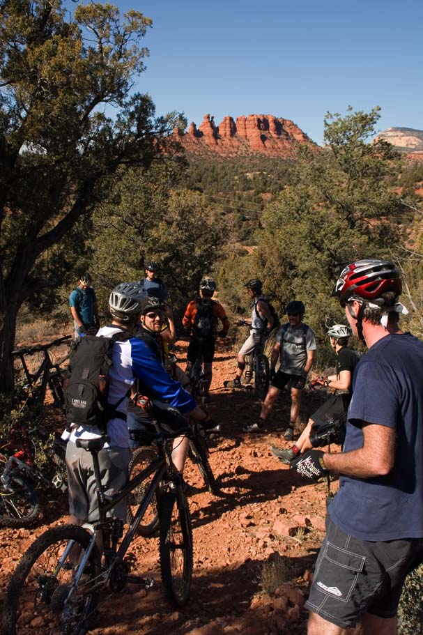Everybody got off to a slow and leisurely start today that included breakfast at the local bakery which was mighty tasty. Now while the SoCal contingent only had one day of riding on our legs, the Colorado folks were going on something like eight straight days of substantial riding and most were looking for something that was not quite epic in nature. Joe, a Flagstaff local (among many other things), came down and showed us around on some nice loops that included some technical chunky stuff that is not yet in the books out near the Dry Creek trails. The trails we were on had some picturesque exposure while being narrow with tight turns that were often times off camber. The chunk factor was high enough that if you did dab, getting back into a rhythm again was tough. I was asked not name these trail so please don't ask. Hook up with some locals and there is a descent chance you'll end up on this trail. UPDATE : Most of those unamed trails have been legalized since 2007. I don't remember all of the names but Ledge-N-Airy was one of them.