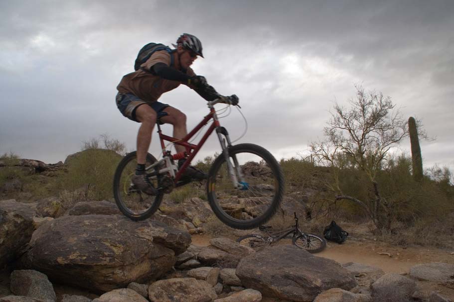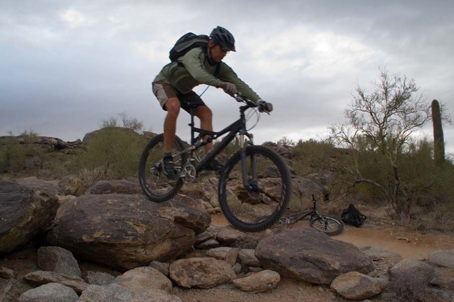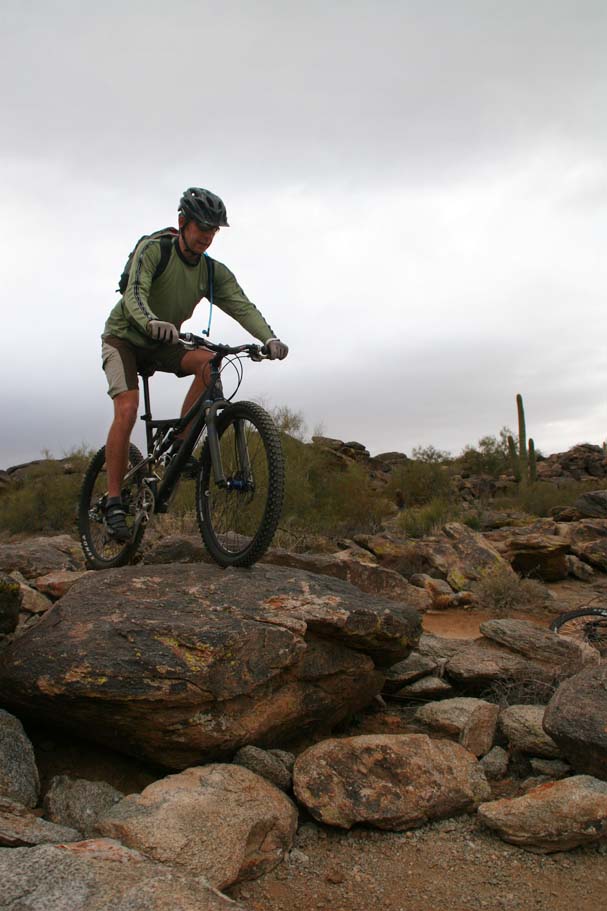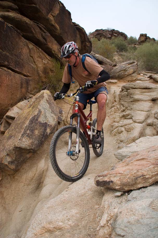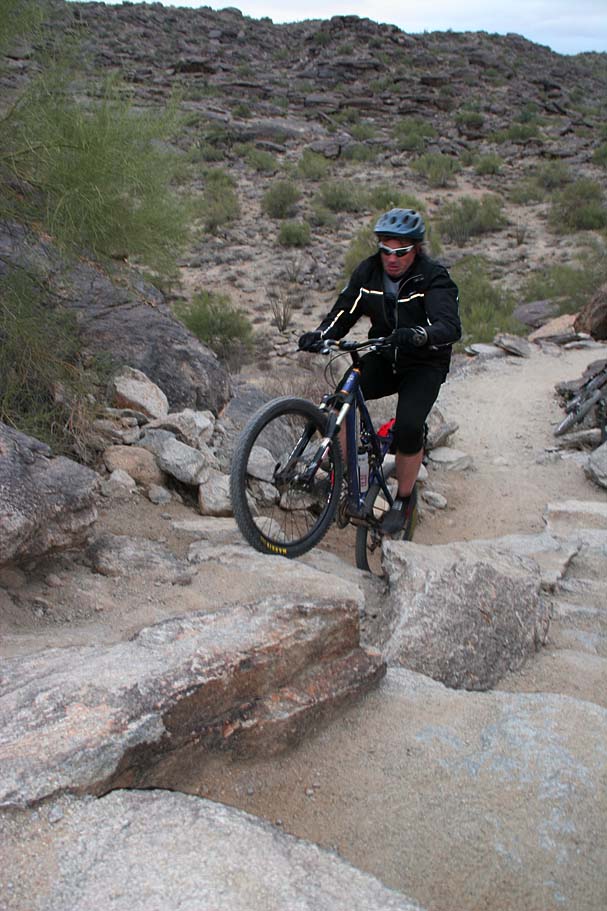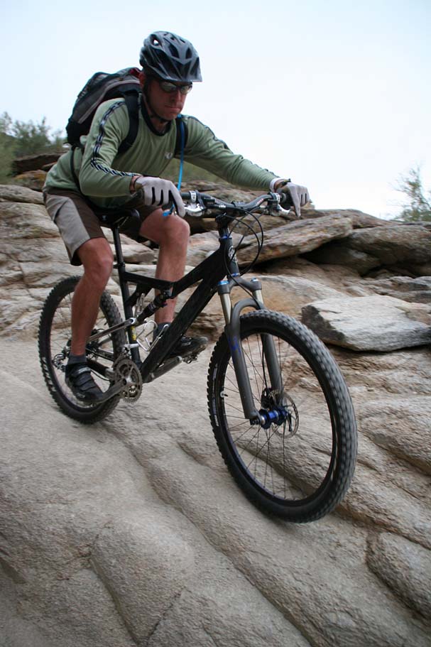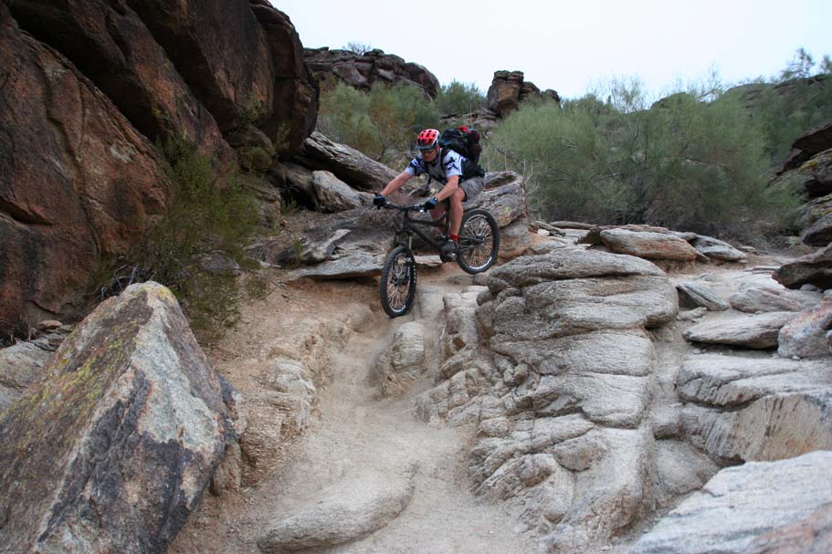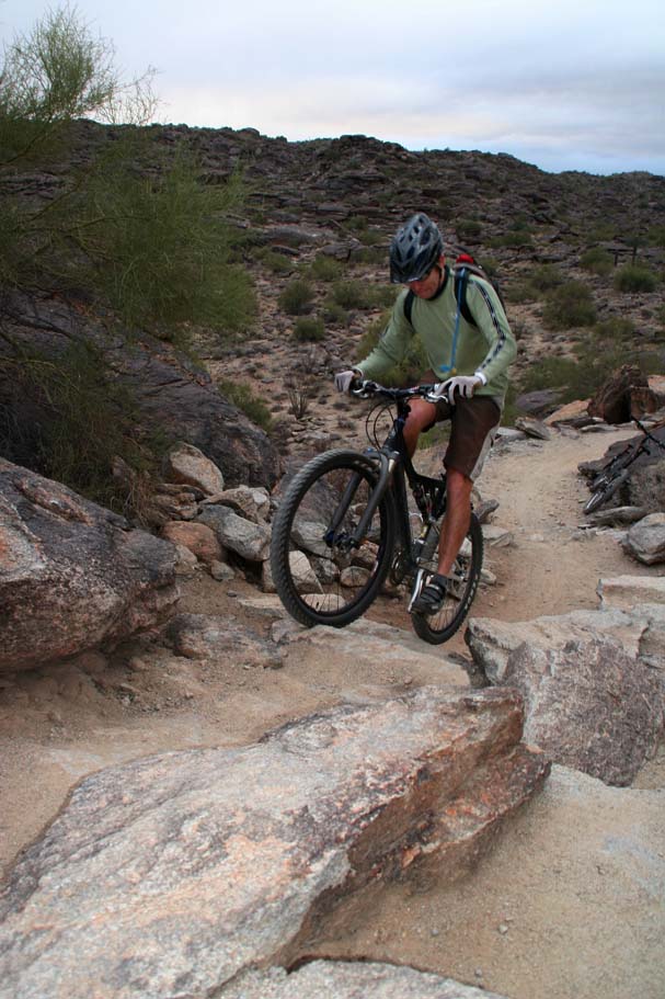 Bike Magazine recently ranked the National trail as one of America's 10 Best Trails saying "South Mountain is, simply put, home to some of the most brutal and demanding cross-country trails in the country." While we only rode a couple of the many trails on the mountain I would certainly agree it is quite technical. I would say it is an advanced riders kind of place, but a strong intermediate level rider who judiciously picked there lines could stay on their wheels for nearly all of the trail. |