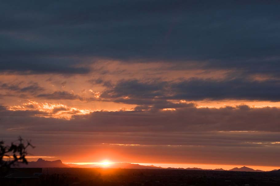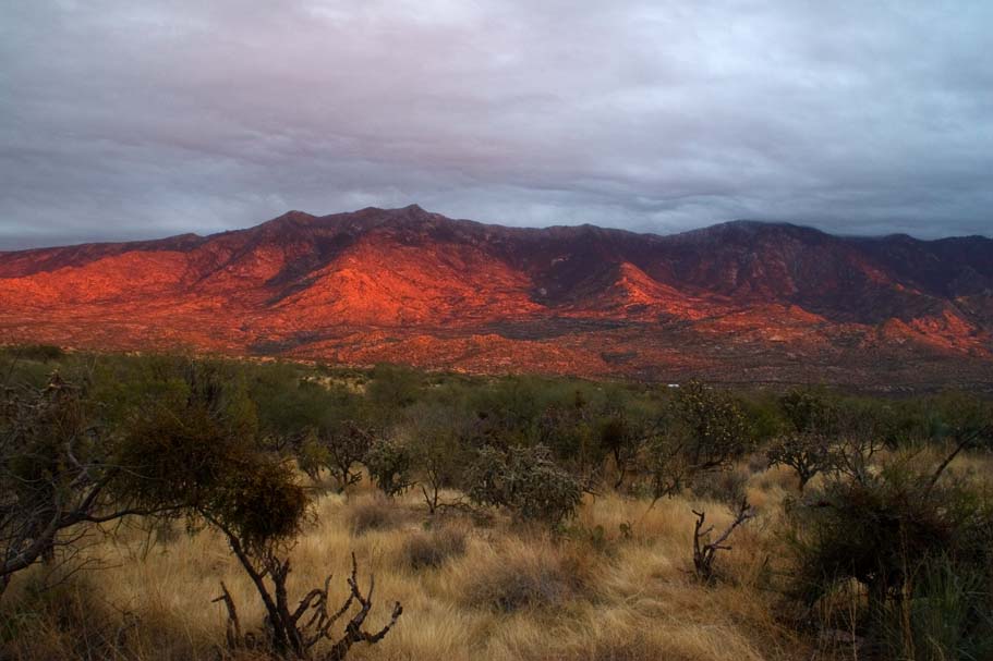 minutes when the sun dipped below the clouds and painted the Catalina Mountains with