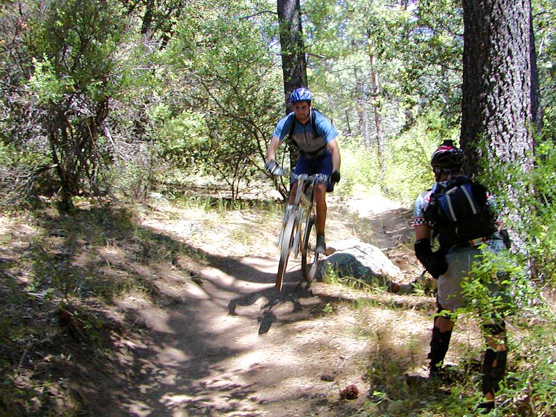 From this point down to the lower trailhead is known as "Extra Credit". After a short bit of climbing normally easy (may not seem so easy at this point in the ride) you get into some swoopy fun non-technical downhill singletrack. Enjoy it while it lasts as the trail will soon be back to jumbly rock sections that are often unrelenting. The rocks in this section are different that what you had to deal with further up the trail but they are no less treacherous. Speed and good "Monkey Motion" will help keep you out of the front wheel grabbers. The rocky technofest continues until just short of the trailhead. You have certainly earned a tasty beverage!