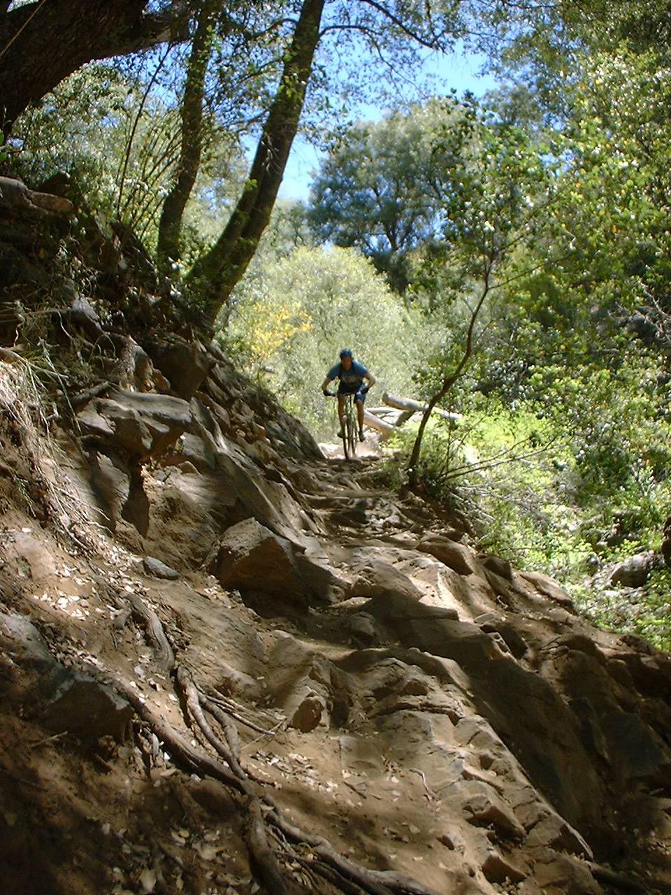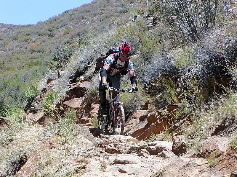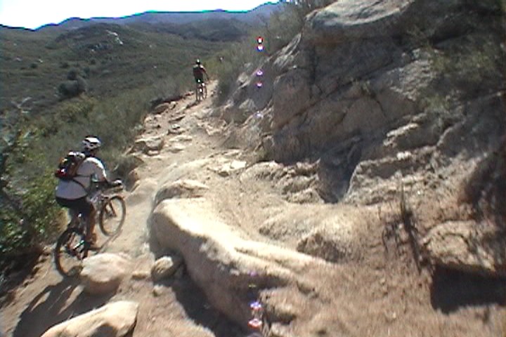 Hazards: Treacherously technical trail with steep drop offs just off the trail in spots. Noble Canyon is not a place to bring a beginner or someone just breaking into the intermediate catergory. For San Diego locals, if Miner's Ridge Loop at Black Mountain gives you fits, you will most likely not be a happy camper on Noble Canyon. DO NOT underestimate the late spring to early fall heat or overestimate how long your hydration is going to last! The lower portions of the trail can get be much hotter than the general surrounding area with little shelter from the sun .