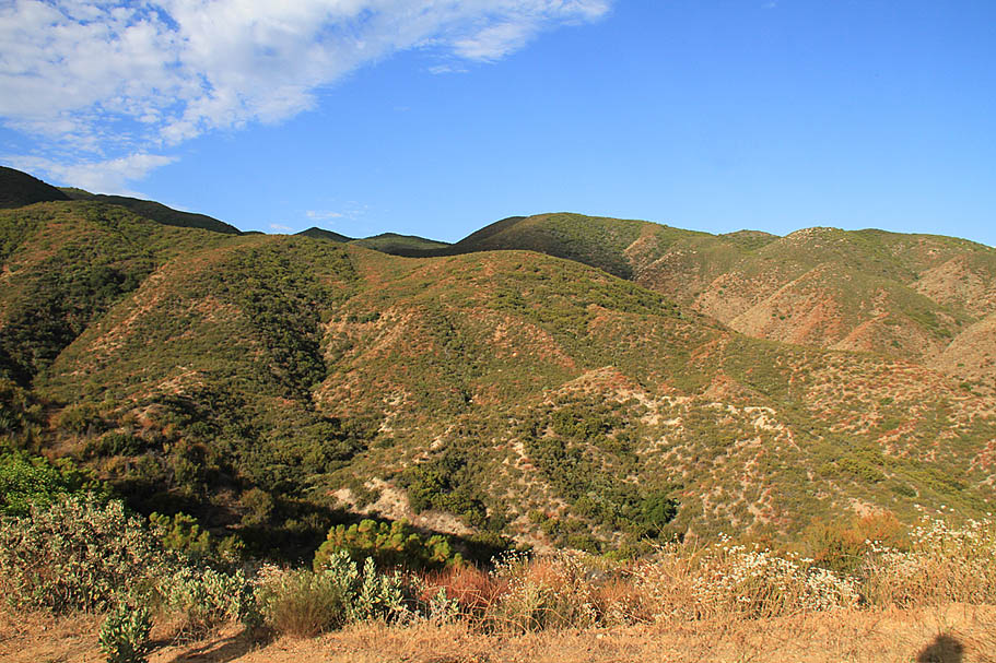 As you climb your views to the north grow in scope and impressiveness. At around 1.5 mile you should notice a very steep trail coming down from the truck trail far above. Yeah it's steep and right along the top of a ridgeline. It is hard to notice where it come out on the bottom, but it pops out on the road around 1.9 miles. This trails drops 790 feet in 6/10ths of a mile with a grade of 34% near the top. Can you say Elevator? Judging by the the tracks, this trail currently looks to be almost exclusively used by equestrians, but it certainly looks doable on a bike.