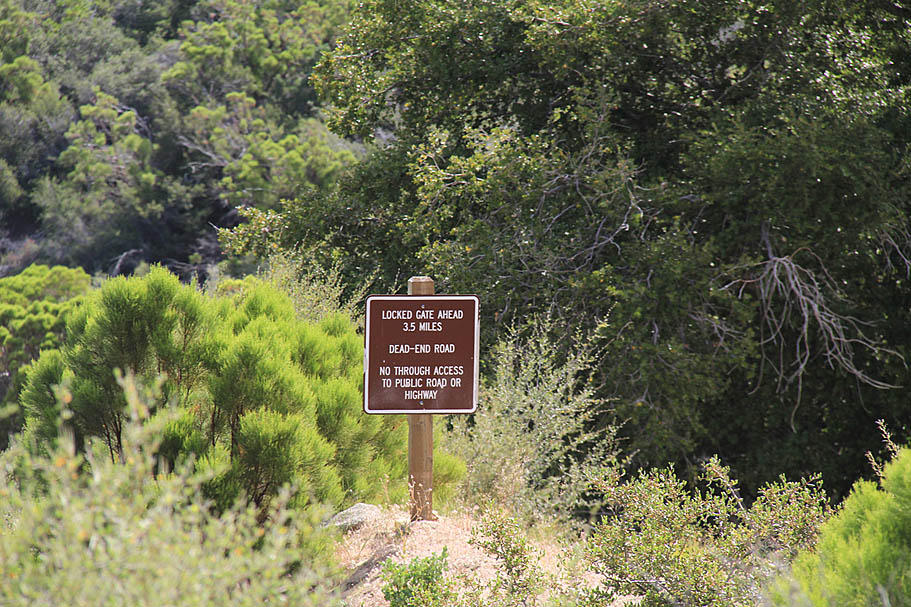 At around the 10 mile mark you get a glimpse of the top of the lookout tower. Just before you reach the Palomar Divide Truck Trail (FS9S07) at 10.7 miles you will get to enjoy a quick reprieve from the climbing. At the junction you will hang a right and head east on the Palomar Divide Truck Trail. It is a fairly quick transition from the open scrub plants into an oak forest as you work your way around the north side of High Point. At 11.8 miles as you come around to the east side of highpoint and come to a split in the trail. You will want to go to your left and uphill on the spur up to High Point. The gate is typically closed to prevent motorized access.