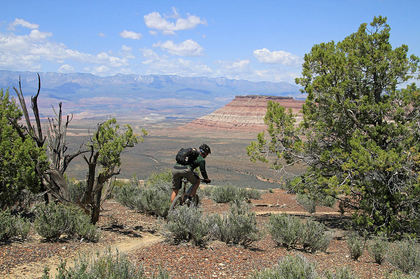 The singletrack eventually spent a good portion of time right on the western rim of the mesa. To say the views were expansive is quite an understatement. Falling off of this mesa will result in certain death. The trail never really get precariously close to the edge but there are a few spots that will pucker you up a little. Looking back at it now, later on in this trip I would have my exposure meter totally recalibrated but that is another story.